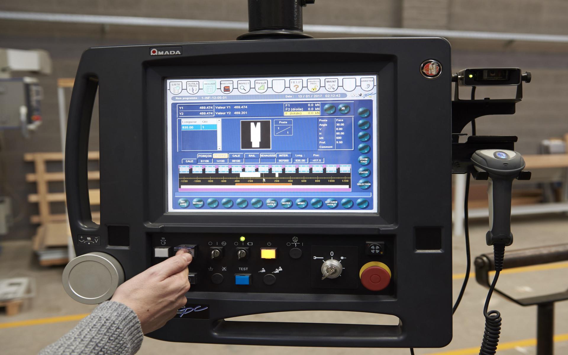 - Un pôle pliage composé d'une presse plieuse 5 axes 80 Tonnes avec un équipement en outils étendu, DAO-CFAO sur interface Sheetworks, AP100, Bendcam pour la conception 3D, le paramètrage et la simulation des séquences de pliage.